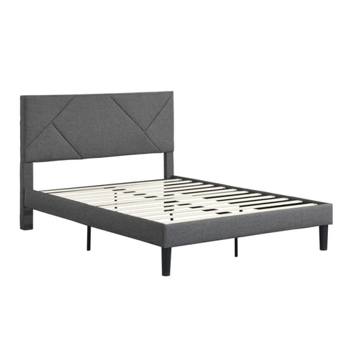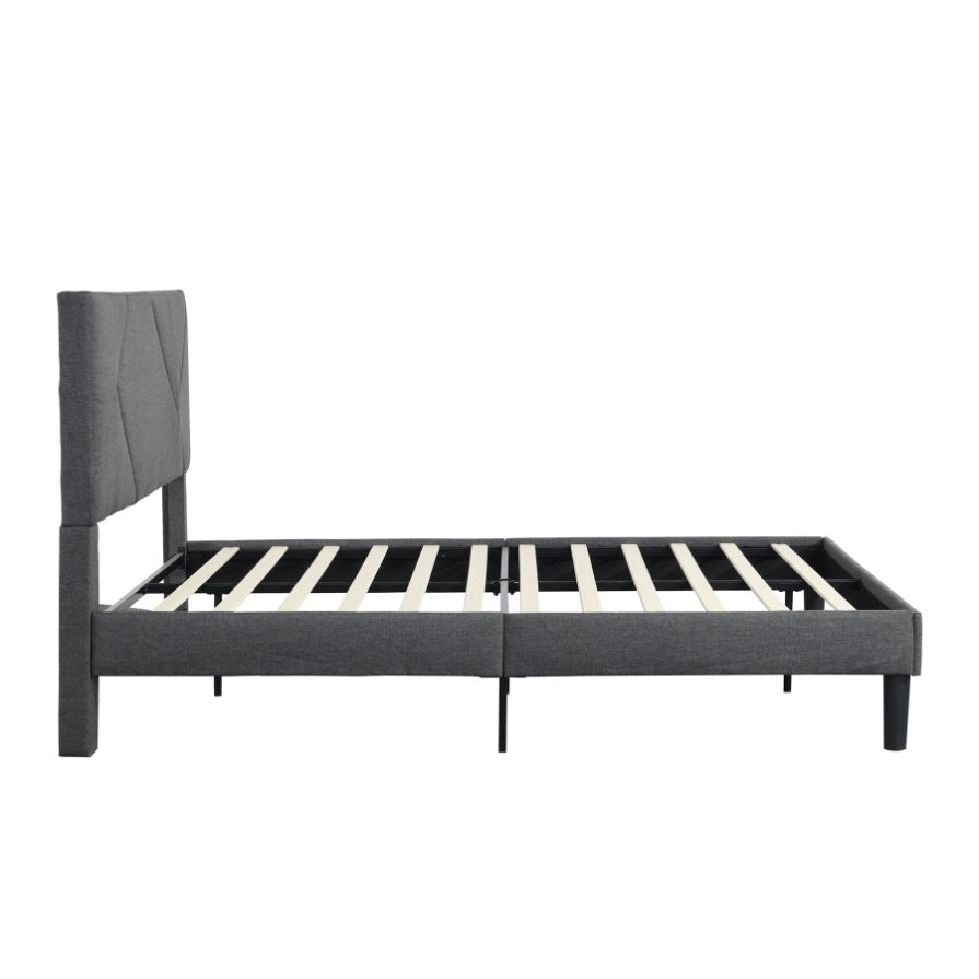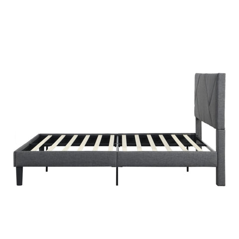 Full Size Upholstered Platform Bed Frame with Headboard, Strong Wood Slat Support, Mattress W2297P347432