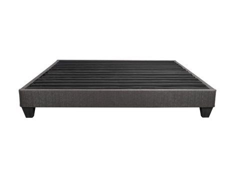 This Fabric Platform Bed Frame Base combines functionality and simplicity in a contemporary stand-alone platform bed base. Featuring a sleek design, simple wood construction and dark gray linen fabric, the Upholstered Bed Base will create the cozy bedroom you've always dreamed of. Attach your favorite headboard with the included headboard attachment kit for a complete stylish bed. This Upholstered Bed Base can be installed directly on the floor with the addition of the included legs, or on a separate bed frame for a higher profile.