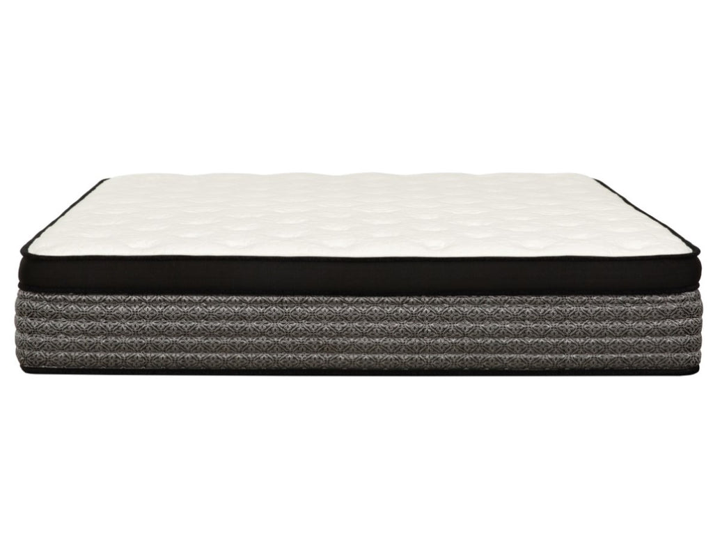 Discover Majesty, where indulgence meets unparalleled comfort for your best night's sleep. With its sumptuous euro top design, it offers an inviting plushness that beckons you to sink into a cloud-like embrace each time you lay down. Featuring a sophisticated design, this boasts a sleek Black border and a plush white knit fabric top, exuding elegance that complements any bedroom decor. Its impressive 16-inch height enhances the sleeping experience, providing a luxurious feeling that caters to your need for restful slumber. This hybrid design merges the best of both worlds: the responsiveness of pocket coils and the contouring comfort of foam layers. The pocketed coil system ensures targeted support for every part of your body, promoting proper spinal alignment and minimizing motion transfer for undisturbed sleep. Immerse yourself in the foam and gel memory foam layers, gracefully conforming to your body while keeping you cool and refreshed throughout the night. Rise invigorated as the adaptive foam soothes pressure points, welcoming a rejuvenated start to your day. Conveniently delivered in a compact box for effortless setup, simply unwrap and witness the mattress unfurl to its grandeur within minutes. Unlock the secret to regal sleep with this meticulously designed to provide the deep, restful sleep you yearn for every single night.