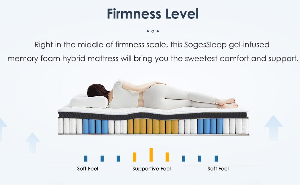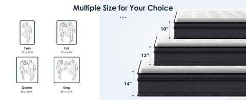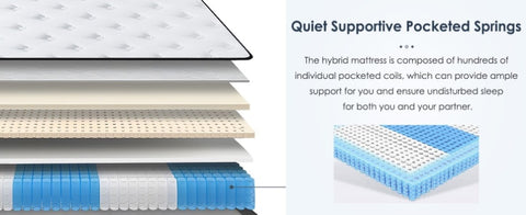 The hybrid mattresses combines gel infused memory foam and spring support system, this hybrid mattress provides comprehensive support from head to toe. It conforms to the natural curves of your body, promoting proper spinal alignment and relieving pressure points. Whether you sleep on your back, side, or stomach, this memory foam mattress helps reduce fatigue and offers a restful sleep.