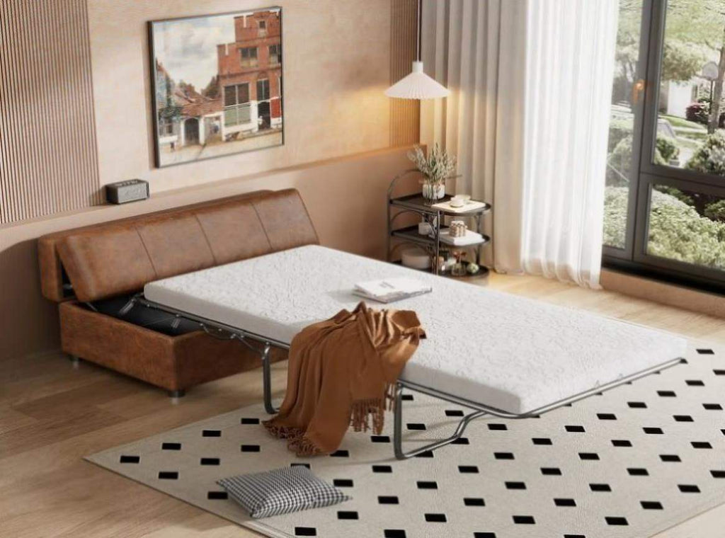 Twin Size Folding Ottoman Sleeper Bed with Mattress Convertible Guest Bed Brown WF307724AAD