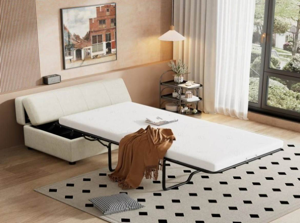 Twin Size Folding Ottoman Sleeper Bed with Mattress Convertible Guest Bed, White N719P243722K