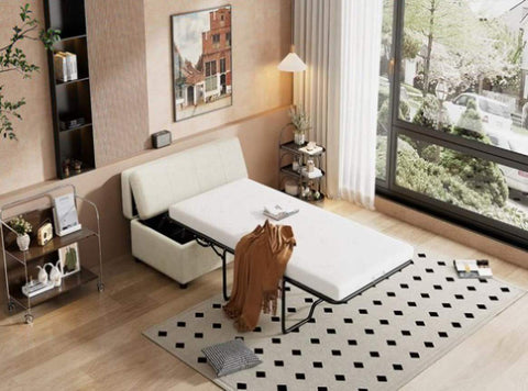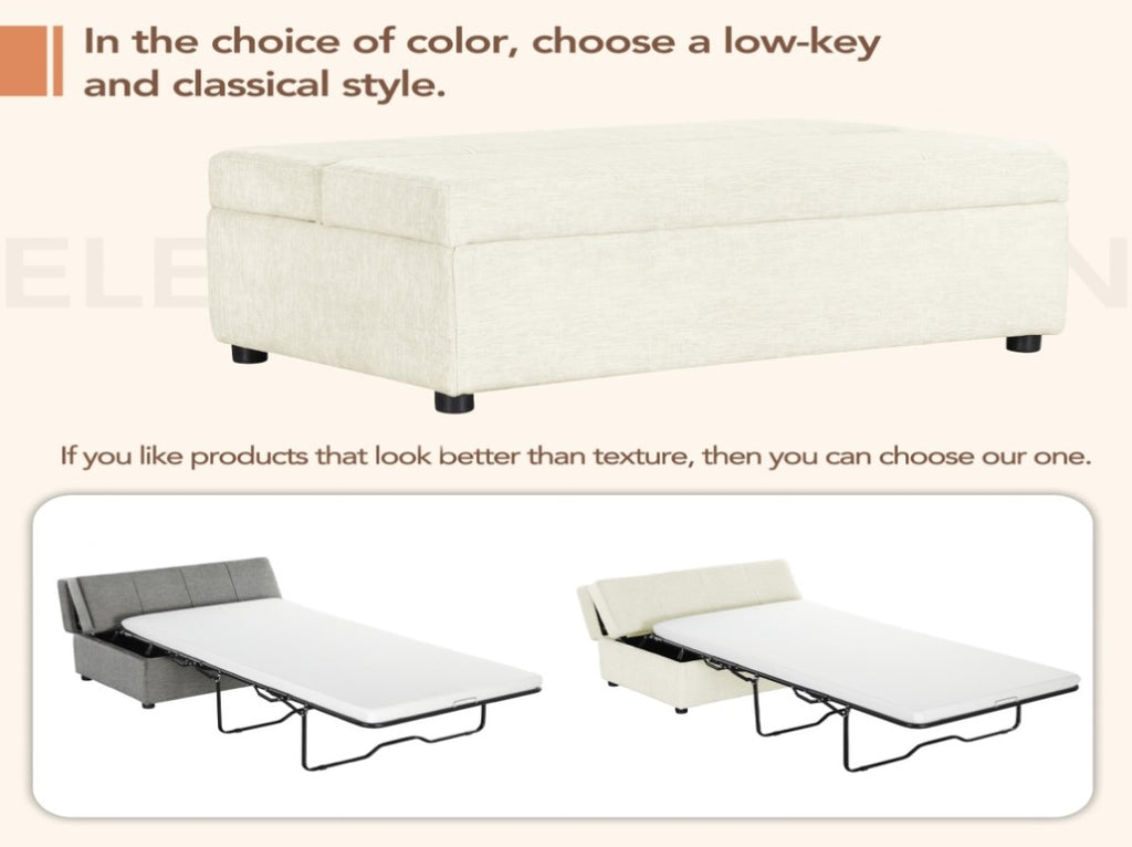 Pull Out Ottoman Sleeper Bed - Simple and elegant design, high-density foam provides the perfect back support.Easily converted into a twin size bed for visiting family and friends.