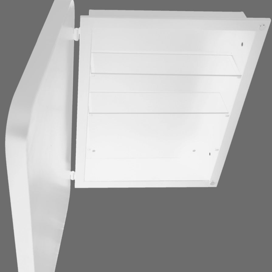 Recessed White Metal Framed Medicine Cabinet with Mirror and Adjustable Shelves