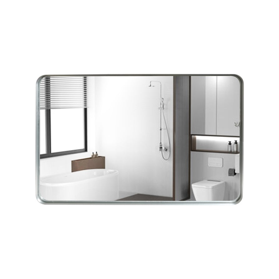 36x30inch Glossy Brushed Silver Rounded Corner Rectangle Wall Mirror For Bathroom Metal Frame Wall W2091126974