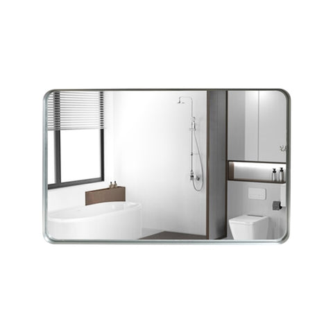 40x30inch Brushed Silver Rounded Corner Rectangle Mirror For Wall Metal Frame Wall Mounted W2091126976