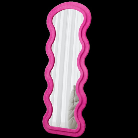 • Comfortable Flannel Fabric Touch:This is a clear and bright wavy full-length mirror, covered with flannel fabric, the wooden frame pad is wrapped with high-quality sponge, providing you with a soft and comfortable feeling. The wavy design adds an artistic touch to any room