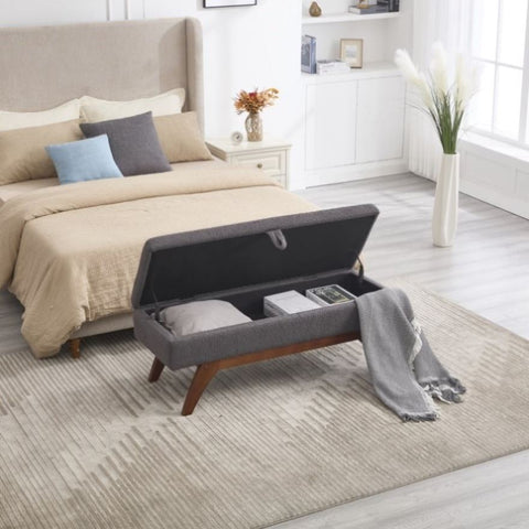 Storage functionHidden storage space: The stool has a storage function inside, which is a very practical design highlight. You can keep your bedroom clean and organized by storing items you don't use often, such as spare blankets and throw pillows. The storage space design is hidden, will not affect the overall beauty of the stool, while meeting the needs of storage, maintain the beauty of the bedroom.Convenient storage experience