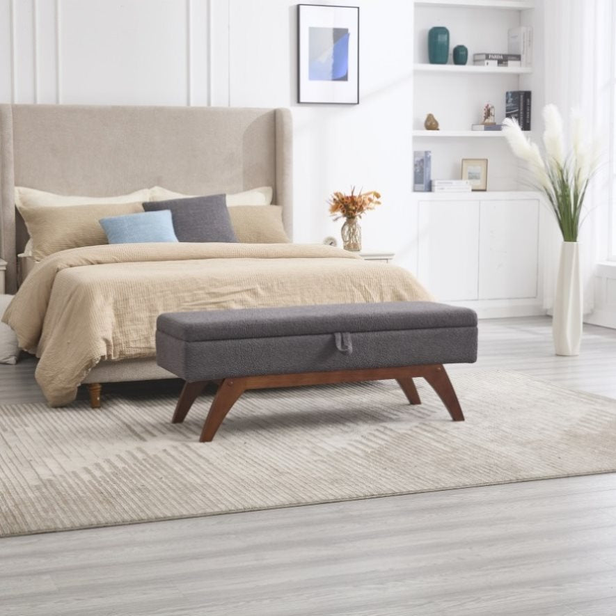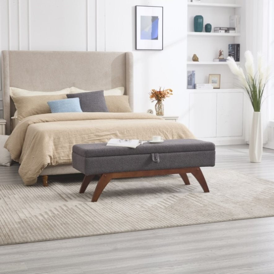 COOLMORE Teddy wool fabric, solid wood feet for solid weighing, and bed end stool with storage W1539P242732