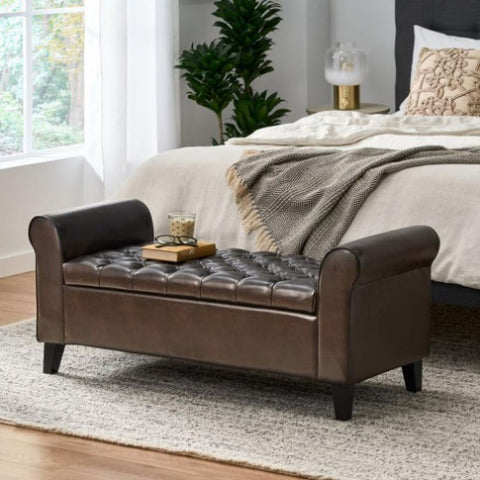 ROLLED ARMS: To complete the refined contemporary look, this ottoman bench features elegantly rolled arms for a luxurious look. This adds an air of sophistication to your room and compliments the tufted diamond stitched lid.