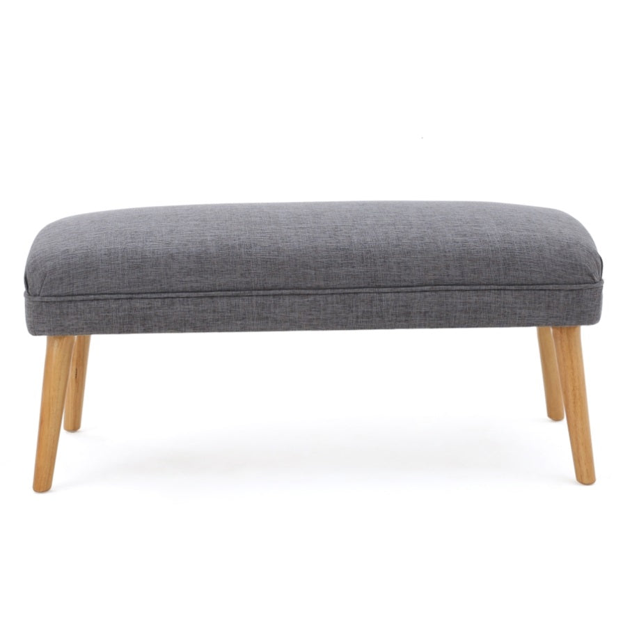 The rectangular seat boasts rounded edges and fabric upholstery for an inviting feel, while its solid hue is sure to make a statement in your abode.