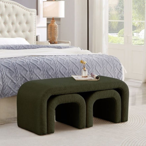 Set of 3 U-Shaped Modern Bench Teddy Ottoman Bench for Entryway, Bedroom End of Bed, Set of 3 Small W2186P282495