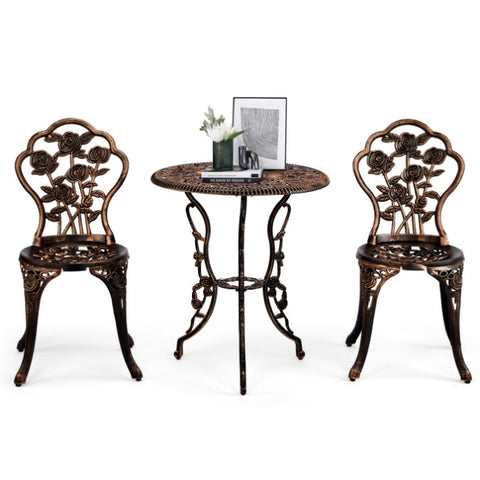 Bistro Set 3 Piece Rustproof Cast Aluminum Patio Furniture Sets 2 Chairs and 1 Round Table Outdoor, W640P251292
