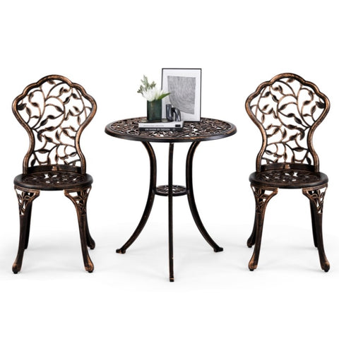 Bistro Set 3 Piece Rustproof Cast Aluminum Patio Furniture Sets 2 Chairs and 1 Round Table Outdoor, W640P251293