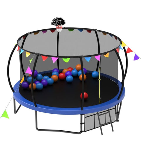 Novel style & complete certification: pumpkin style 12FT big trampoline, the appearance of more three-dimensional sense, the net pole and the net space is large, not easy to collide. The product has ASTM F381-16 & F2225-15, CPC and CPSIA certification testing.