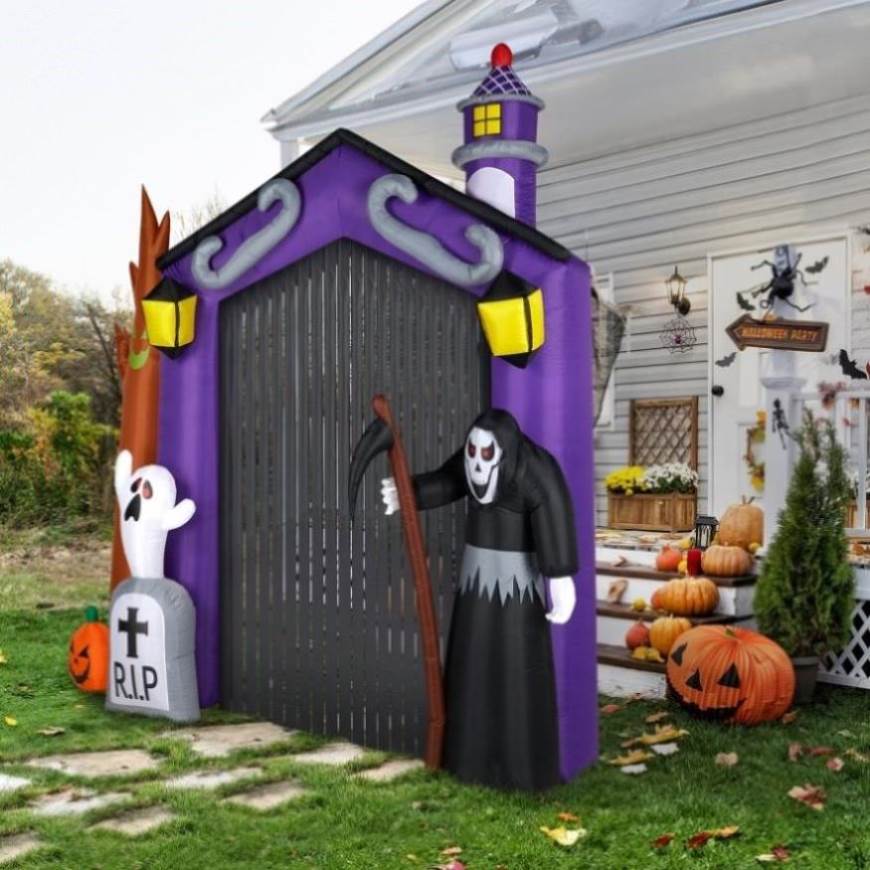 Transform your yard into a spooky spectacle with our 9.8 FT Halloween Inflatable Haunted House Castle Archway. This giant, eye-catching decoration features a grim reaper and ghost design, perfect for creating a mysterious and eerie atmosphere. Ideal for holiday parties and front yard displays, this inflatable archway will be the highlight of your neighborhood, attracting guests, friends, and trick-or-treaters alike.