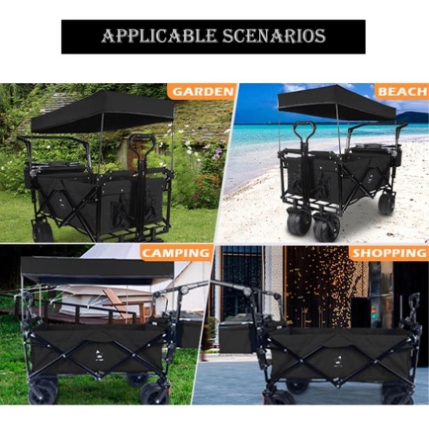 - 【EASY USE & PORTABILITY】The cart body requires no assembly. It can be folded or opened in just 3 seconds. The canopy can be installed as needed. After folding to a size of approximately 24.29"x29.92"x 6.89", only 6.9" thick and weighing about 36.74Lbs, you can simply pull it like a suitcase, saving a great deal of space