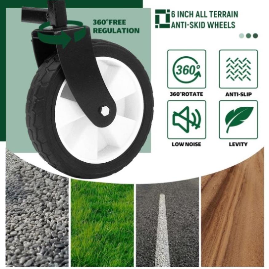 - All-Terrain 360-Degree Swivel Wheels: Equipped with 6-inch wheels that can rotate 360 degrees, this cart is perfect for navigating various terrains, making it easy to maneuver on any surface.