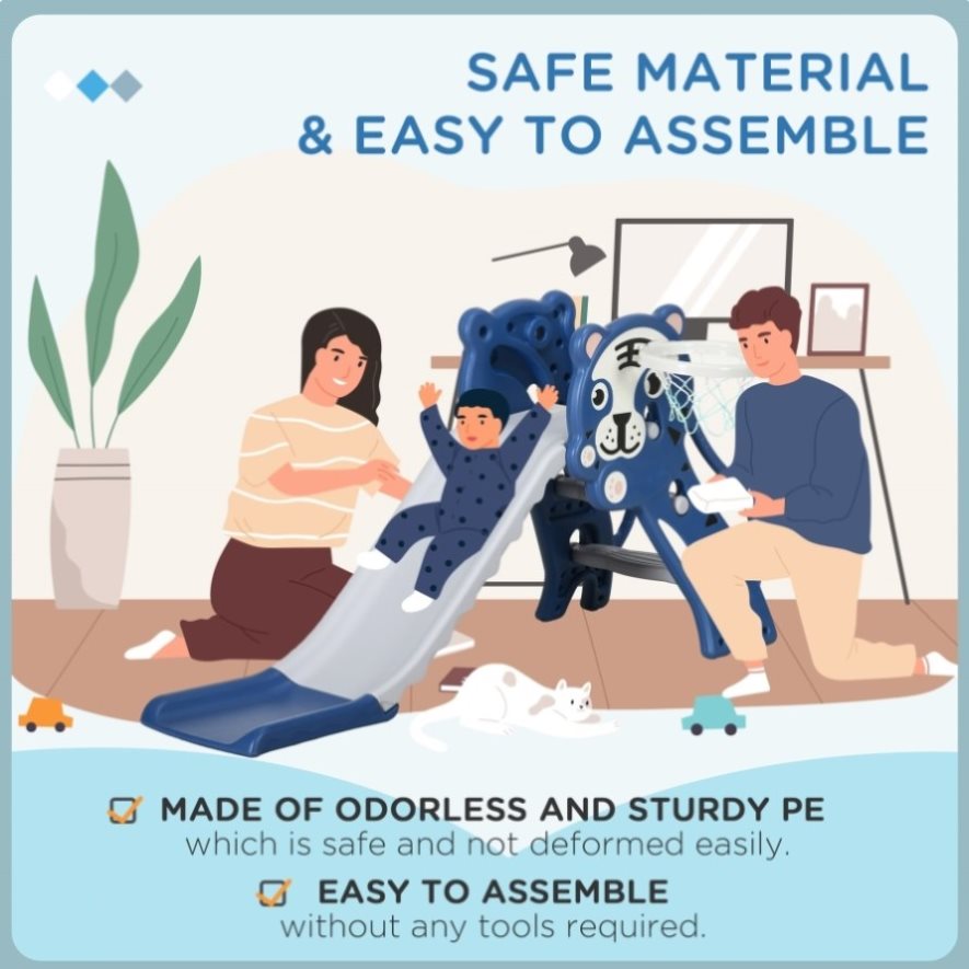 - - It's a slide, a climber and a basketball hoop