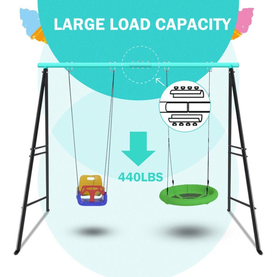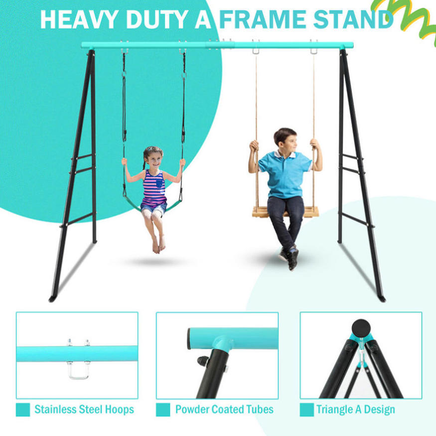 [Outstanding Durability]-High-quality steel gives kids swing sets for backyard a longer use time,electrostatic powder coating protects it from rust and corrosion