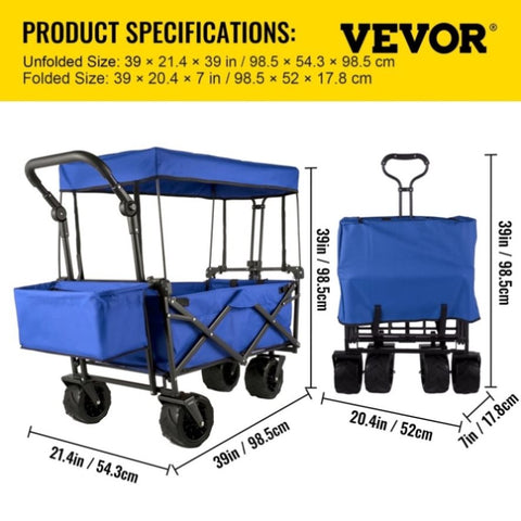 VEVOR Extra Large Collapsible Garden Cart with Removable Canopy, Folding Wagon Utility Carts with T3342P298271