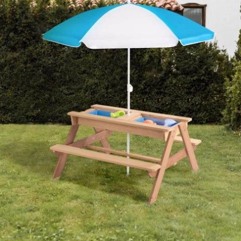 - 3-IN-1 DESIGN:3-in-1 design makes this table multifunctional. It can be a picnic table to put outside or an activity table. Remove the tabletop and you can turn this picnic set into either a sand table or a water table and have more fun with the included sink toys.