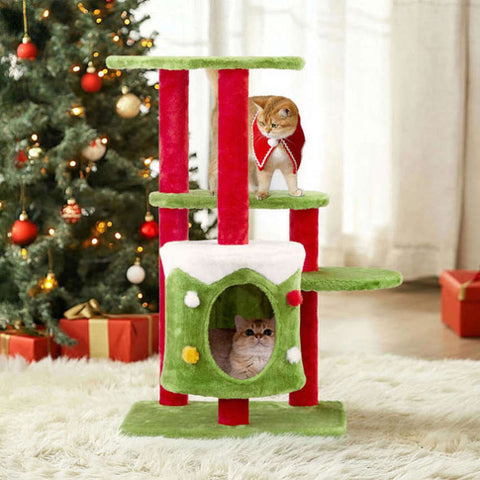 1. Festive Christmas Design: This vibrant holiday-themed cat tower not only provides endless fun for your feline friend but also adds a delightful, festive touch to your holiday decor. It's the perfect way to invite your cat into the holiday spirit!