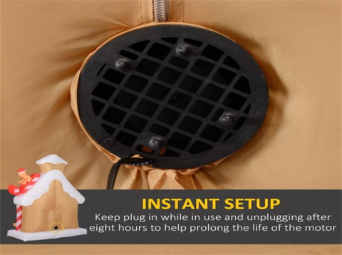 Note1: Ensure the air blower is always connected to the power source to keep outdoor yard Xmas decorations inflated, but not above eight hours a time for long motor service life
