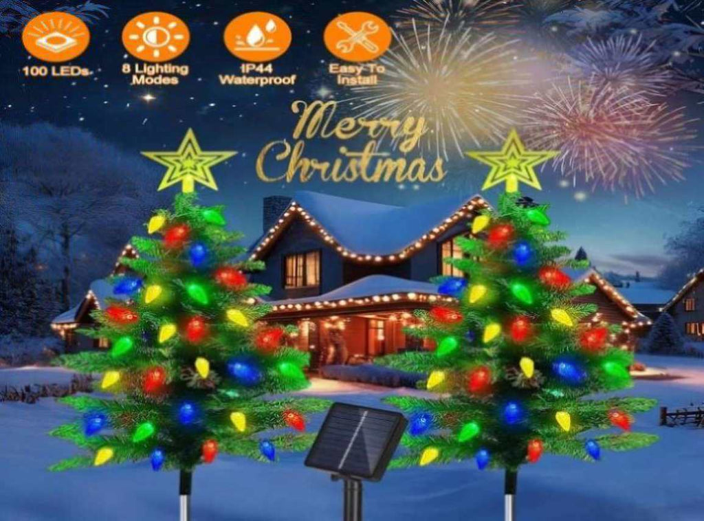 • Perfect Christmas Decoration & Gift: This 8 Modes Solar Christmas Tree Pathway Light with adorable Christmas decor is an ideal decoration in Christmas to create a lively, romantic and fantastic atmosphere after inserting them in your backyard, front door, garden, making this holiday season unforgettable! It's also a perfect present gift for your parents, friends, or your neighbor.