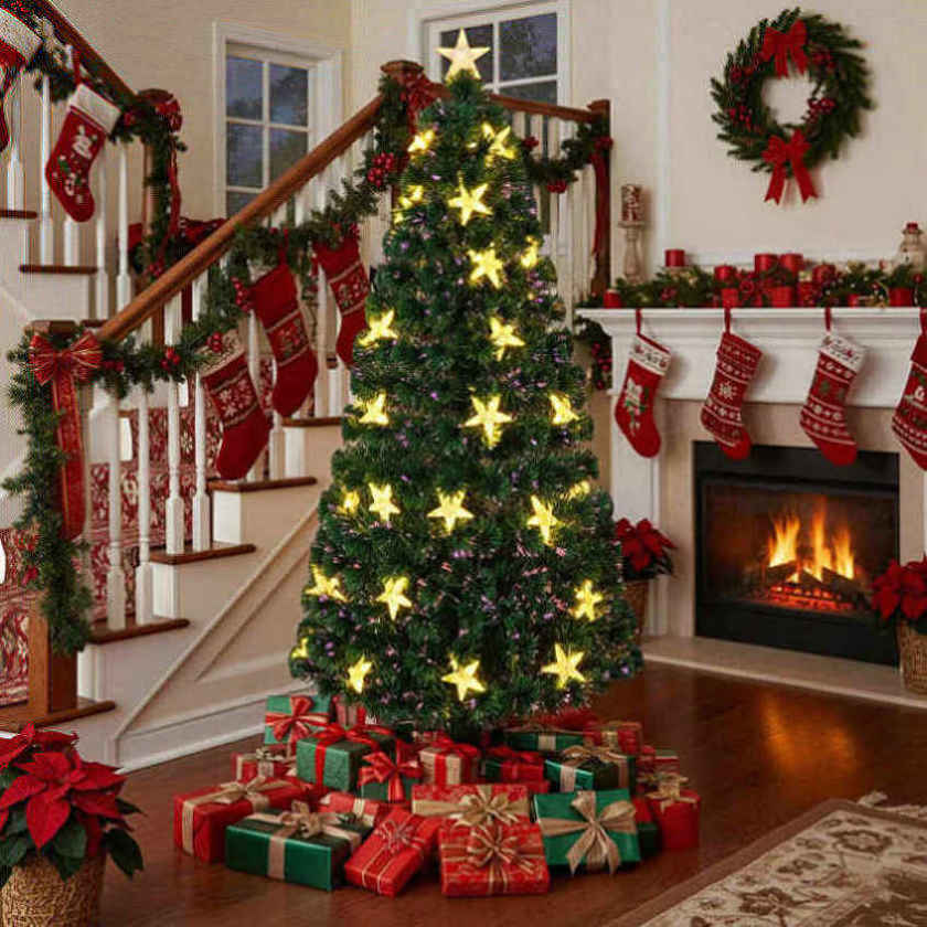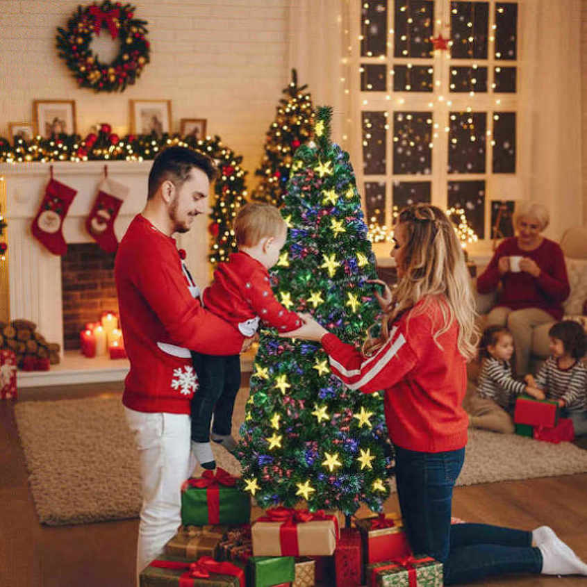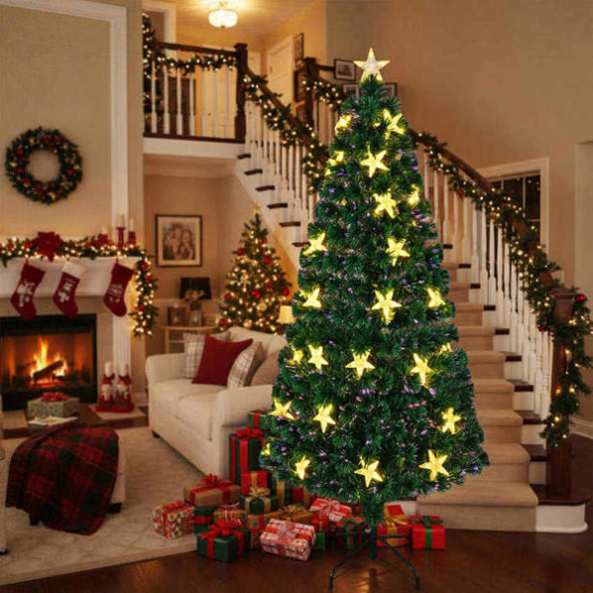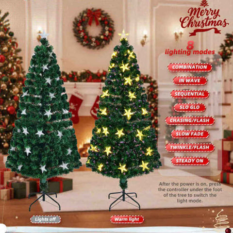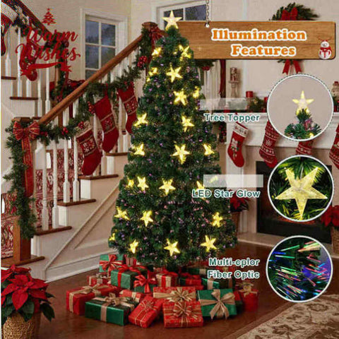 6FT Christmas Tree Large Stars Pre-lit Fiber Optic Artificial Plant Tree Color Changing Lights 96626423