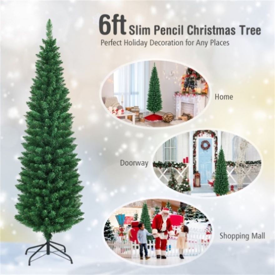6ft Slim Pencil Christmas Tree - Space-Saving Design for Small Corners, 400 Realistic PVC Branches 07280669