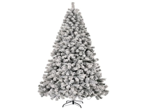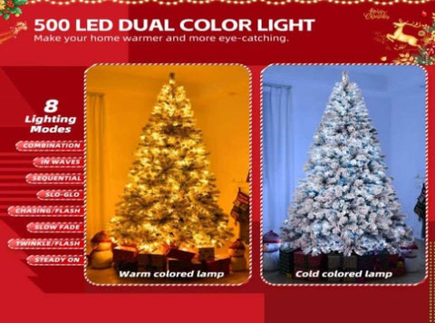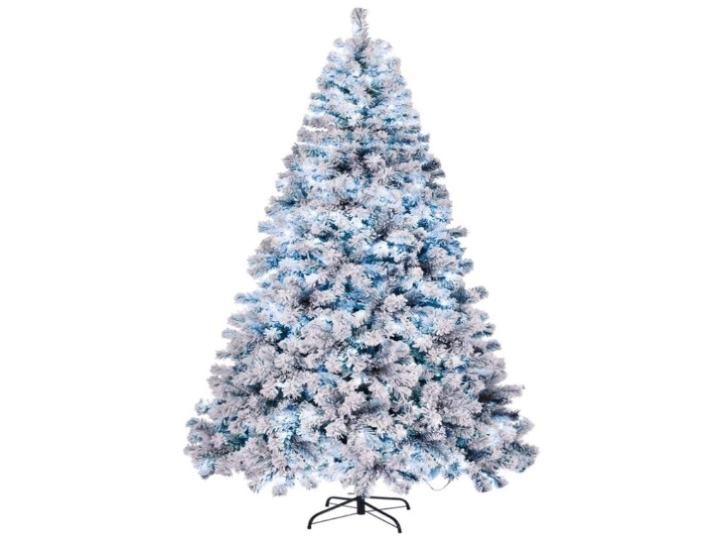 8 FT Pre-lit Snow Flocked Christmas Tree, Artificial Hinged Xmas Pine Tree with 1300 Branch Tips, 58922535
