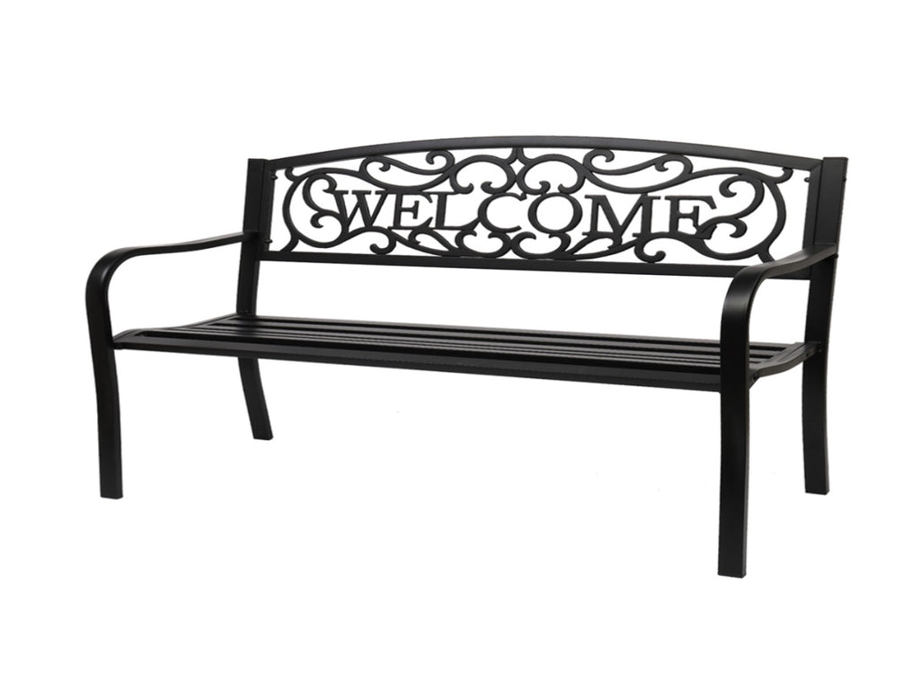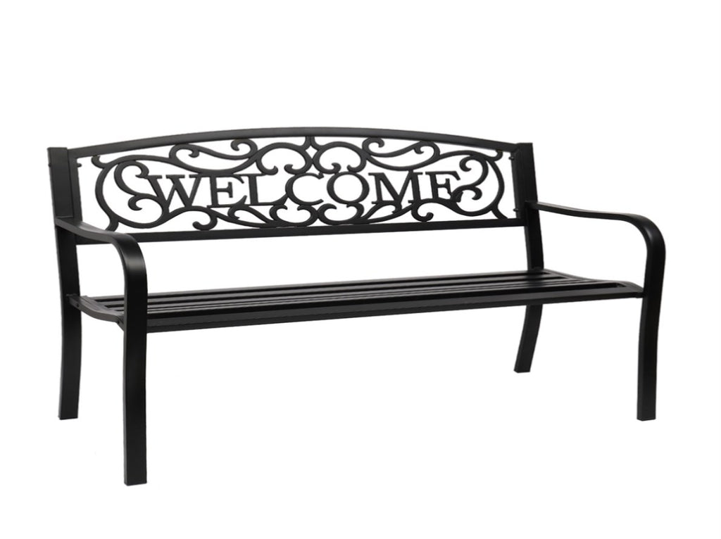 Here is our 50" Outdoor Welcome Backrest Cast Iron Bench. Lounge comfortably or read a good book on this beautifully designed bench. It will fit perfectly on your backyard, porch, and path, or near your entrance and driveway. Antique style adds a touch of elegance to any outdoor area. Curved armrests with a sloped slatted seat offer optimal comfort. Powder-coat iron construction provides years of durability as well as easy maintenance. What are you still hesitating about? Order now!