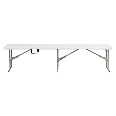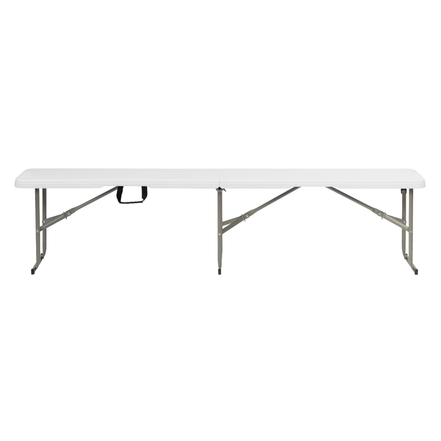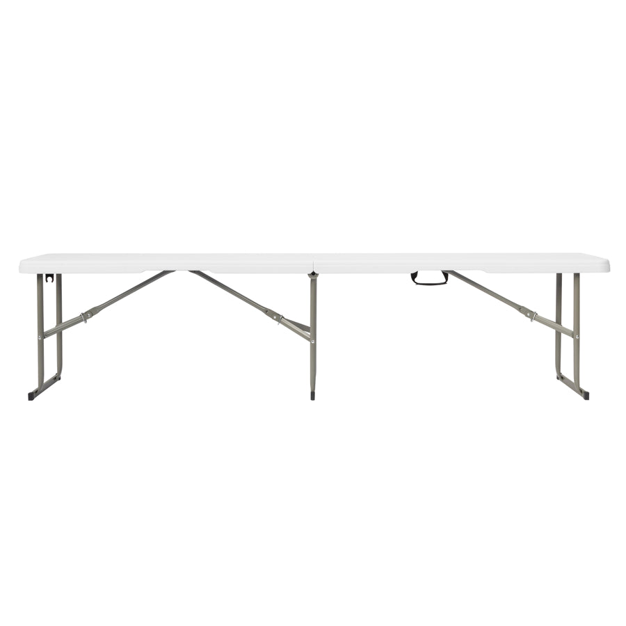 The 6FT Outdoor Courtyard Foldable Bench is perfect for outdoor party, picnic, camping, wedding and more. It is constructed with a polyethylene top and a sturdy tubular steel frame and legs to offer high strength, water resistance, fire retardance and durability. It can be folded and extended easily provide enough space to your guests and save room for storing it under a bed or in a closet. Rubbers on the legs prevent your floor from scratches or any damage. Don't hesitate to order now!