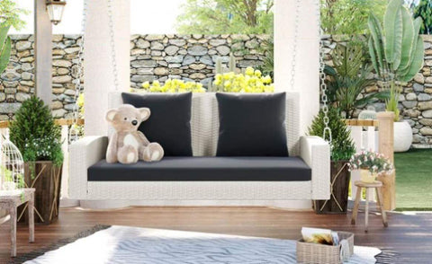 [Seats up to 2 Persons] Our wicker porch swing has a wide seat with a long cushion and 2 back pillows, and 500 lbs(250 LBS/SEAT) weight capacity is safe enough. Thus, two people can easily sit together and enjoy your best time outdoor with this fantastic swing. This makes it an excellent addition to your porch, backyard, patio, garden, or Deck.