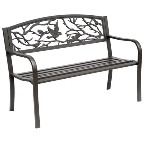 - - Distinctive animal pattern on the cast iron bench back gives it a unique vintage feel