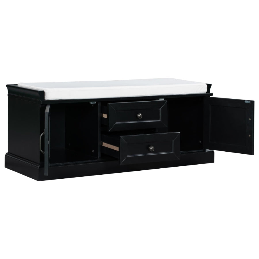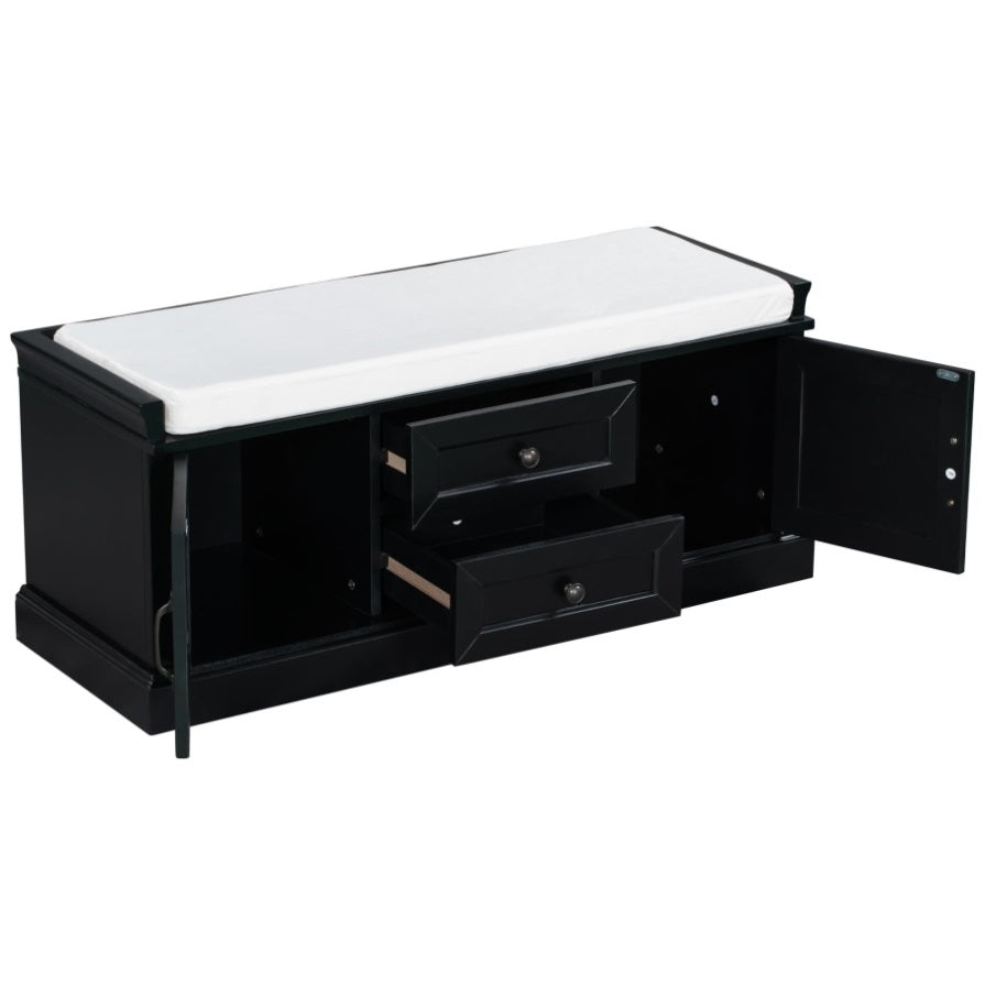 Storage Bench with 2 Drawers and 2 Cabinets, Shoe Bench with Removable Cushion for Living Room, 52471490