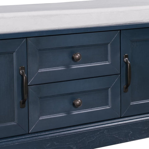 Storage Bench with 2 Drawers and 2 Cabinets, Shoe Bench with Removable Cushion for Living Room, 85506854