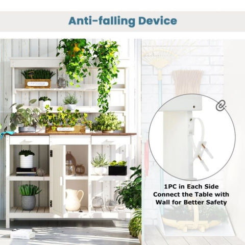 [Anti-Falling Safety Device] There is not always flat in the garden. For your safety in setting the potting bench, it is designed with an anti-falling device. Just connect the device with wall for better safety.