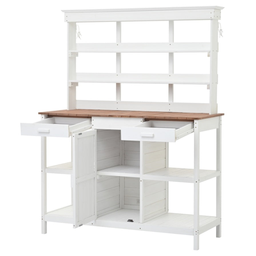 [Large Workspace] Once you have a potting table you will wonder why you get it until now. Made of 100% fir wood, this potting bench is with larger workstation which is up to 50.2x19.7inch so that it will provide lots of work room. All tools are in handy and it can also be an artful place to show your garden stuff.