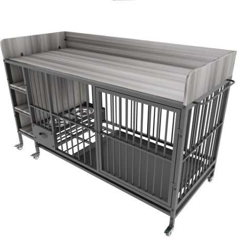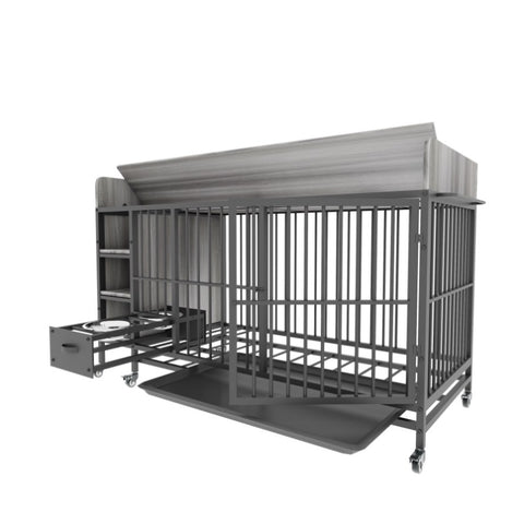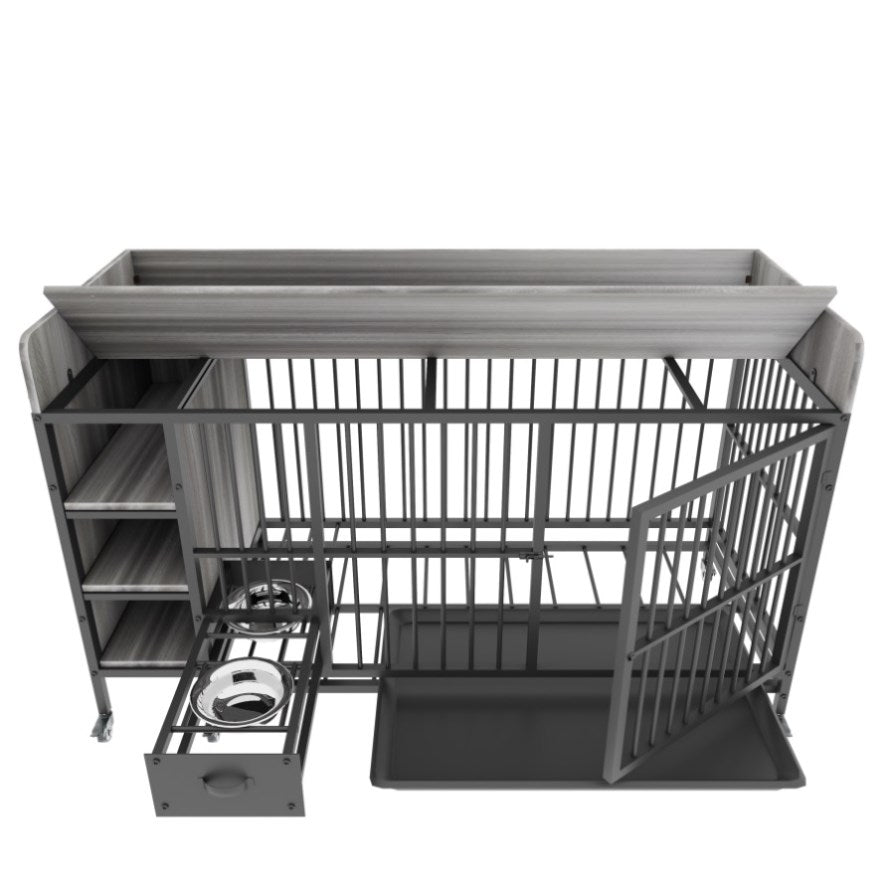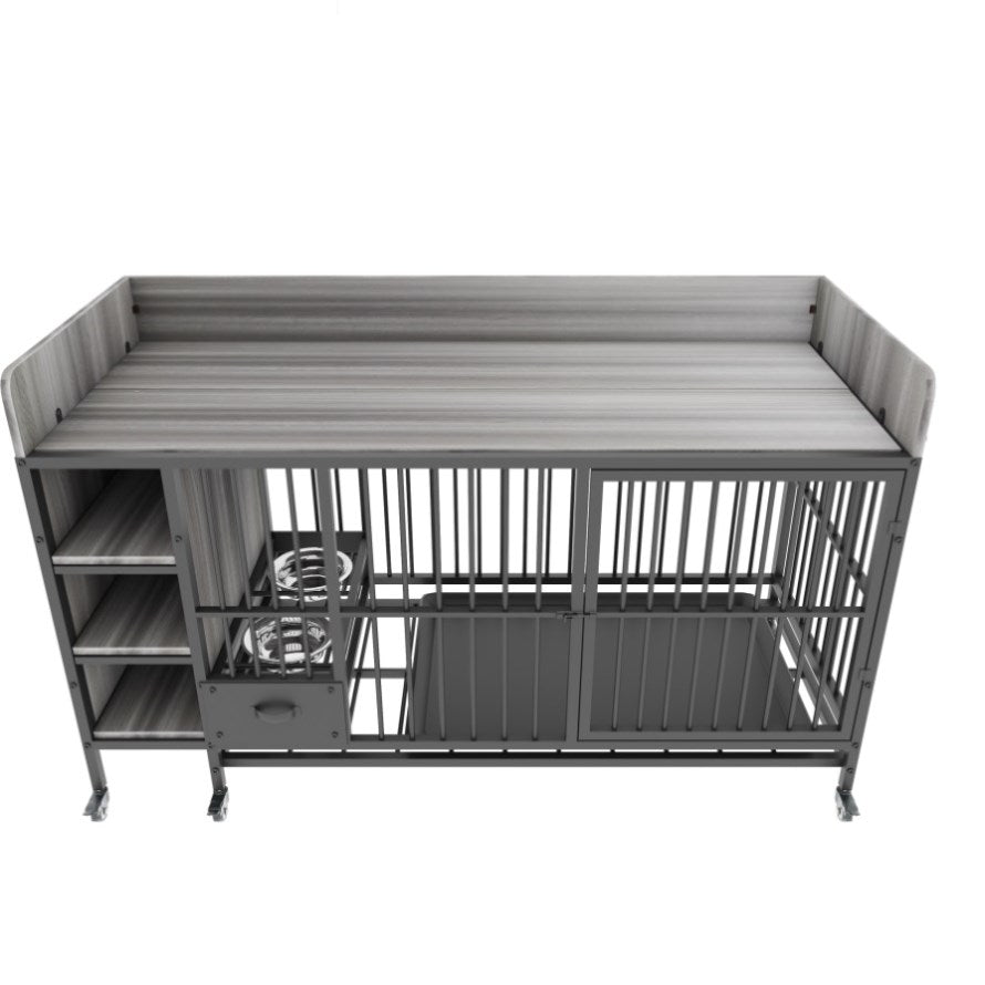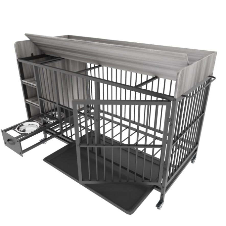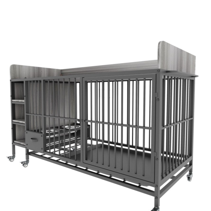 This pet cage made of iron pipes and composite panels is sturdy and durable, with multiple practical functions