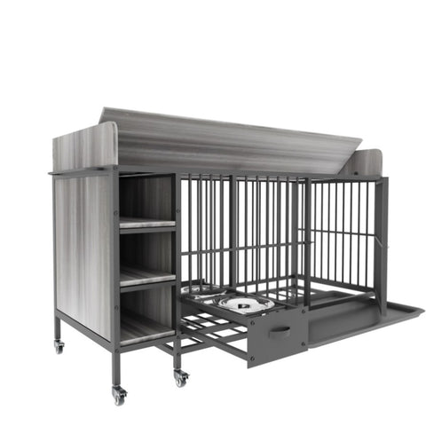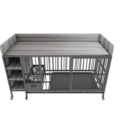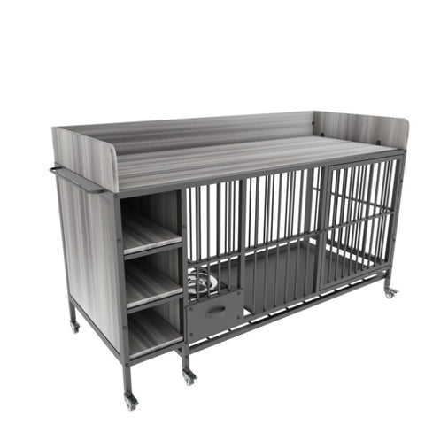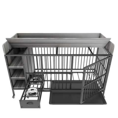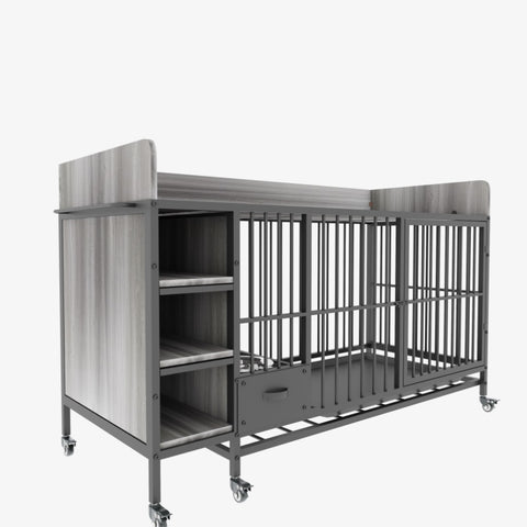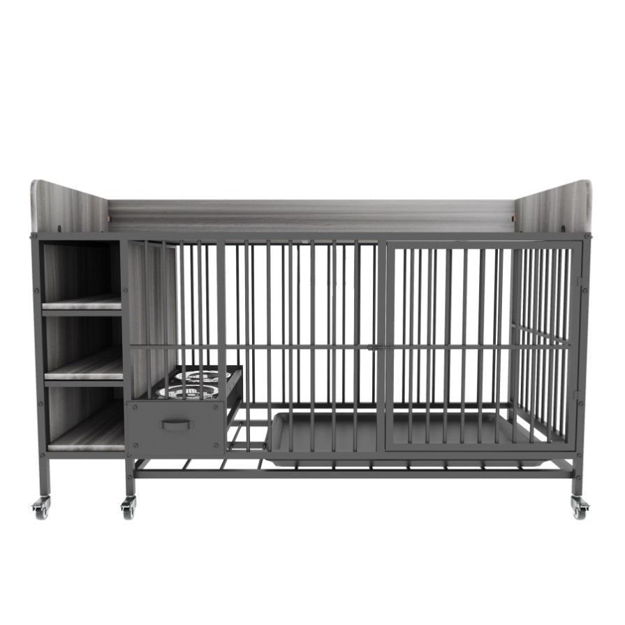 This pet iron cage comes with a storage cabinet and a large storage compartment on the top, which can hold pet supplies and food