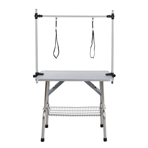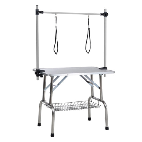 36" Folding Dog Pet Grooming Table Stainless Steel Frame Rubber Mat on Board with Adjustable Arm and 90395120