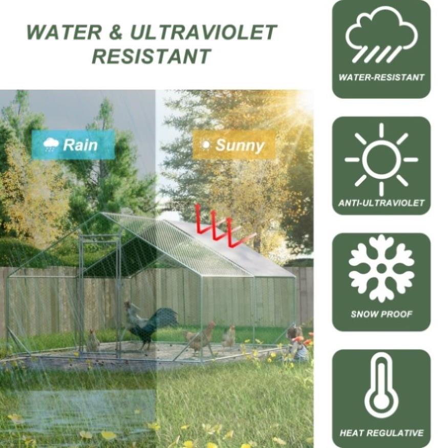 3. Waterproof and UV Protective Cover: Our chicken coop cover is durable polyethylene tarp that provides full protection from sun, rain and snow, and added UV protection to prevent tearing, cracking, fading or peeling so you can last for years