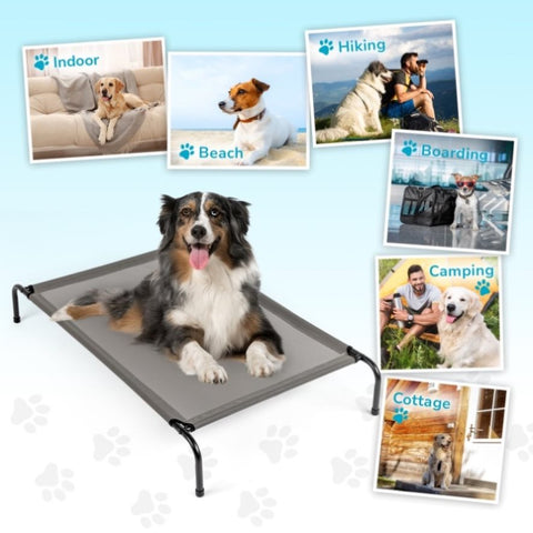Strong & Durable: Heavy-duty Textilene mesh holds up against scratching and chewing, providing excellent support and even pressure distribution to reduce joint and muscle pain. Equipped with skid-resistant feet, our elevated dog bed protects your floors from scratches and keeps the bed from sliding when your dog jumps on or off. This resilience makes it the perfect bed for year-round, all-season use for indoors and outdoors.