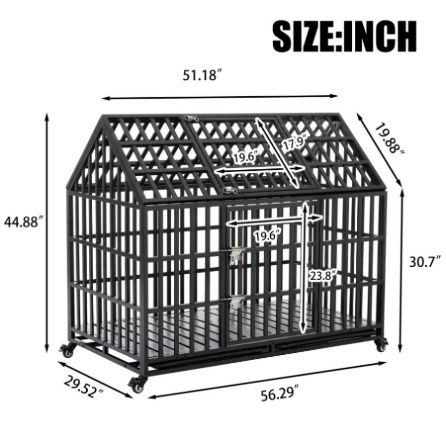 52" Heavy Duty Dog Crate Large Dog cage Strong Metal Dog Kennels and Crates for Large Dogs with 4 W206137933