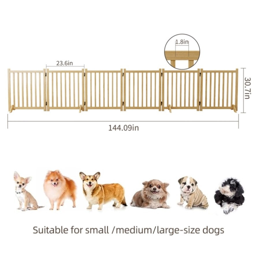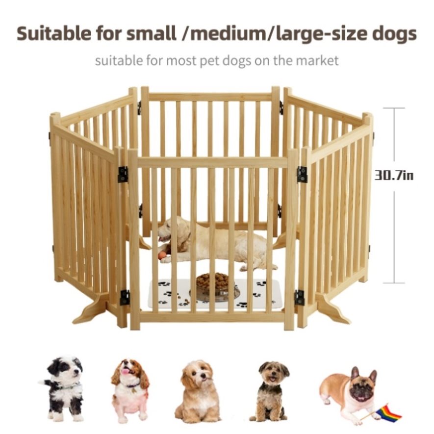 (6 Panel) Wooden Freestanding Dog Gates for The House,Dog Gates for Doorways, Stairs,Wood Dog Fences W2641P336052