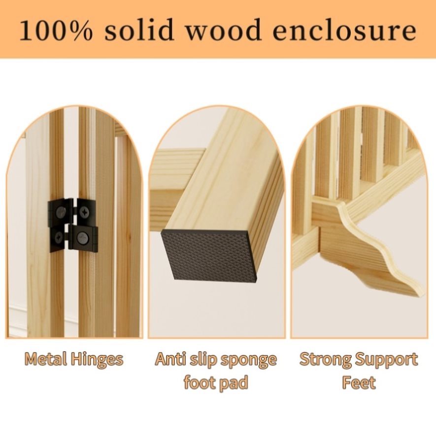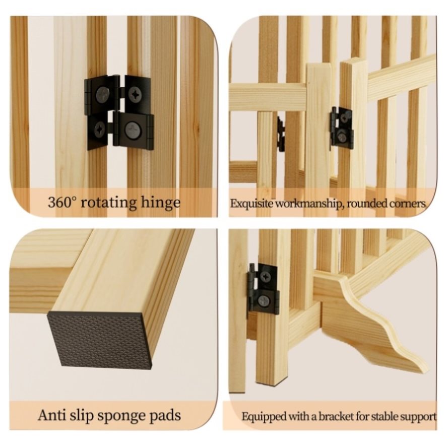 NO ASSEMBLE REQUIRED:Comes with completely assemble,the wooden gate can be used directly. You could put the pet fence anywhere to barricade your pets,dog gate for stairs,The self-supporting pet door for stairs does not require holes in the wall and can be opened upright immediately without tools, making it easy for anyone to install.