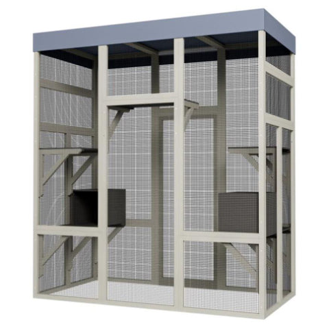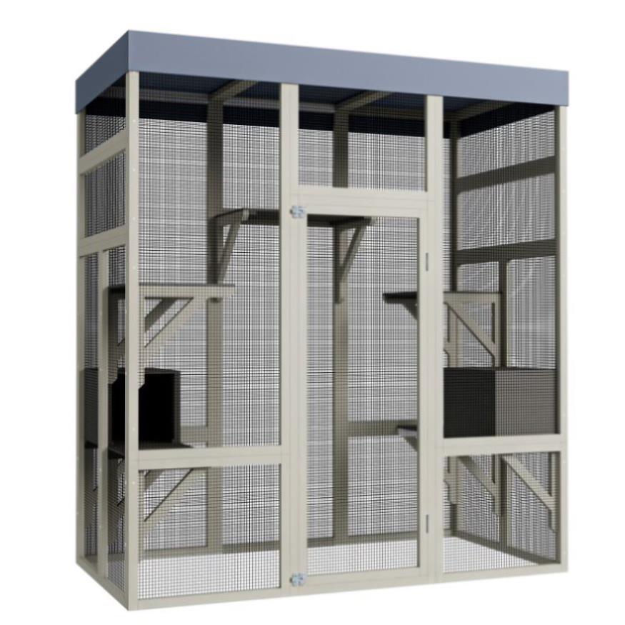 This 70.1" tall wooden cat enclosure offers plenty of space for multiple cats to climb, play, and relax safely outdoors. Ideal for backyards, patios, or balconies.