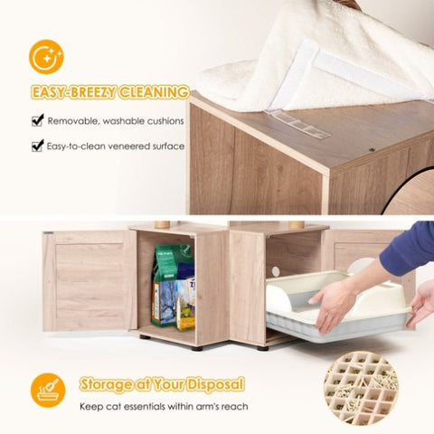 63" Multi-Functional Cat Tree with Litter Box - Includes Removable Washable Cushion, Scratching W1687P304383